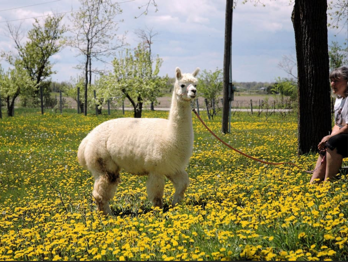 John and I got into alpacas because they are very social creatures. They are gentle, curious, adorable, docile and soft. We raise alpaca for their fiber. We have competed with our alpaca over the years.